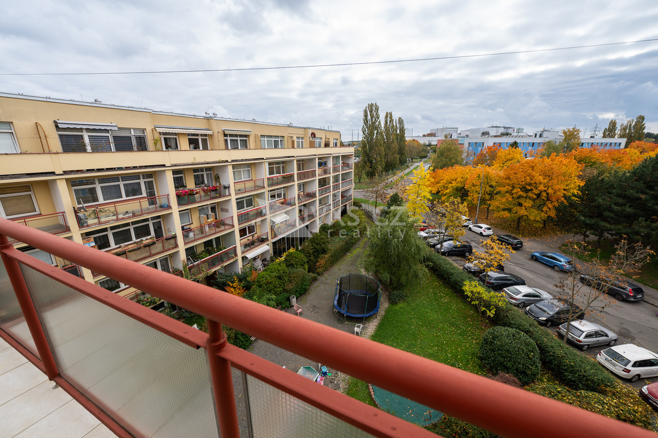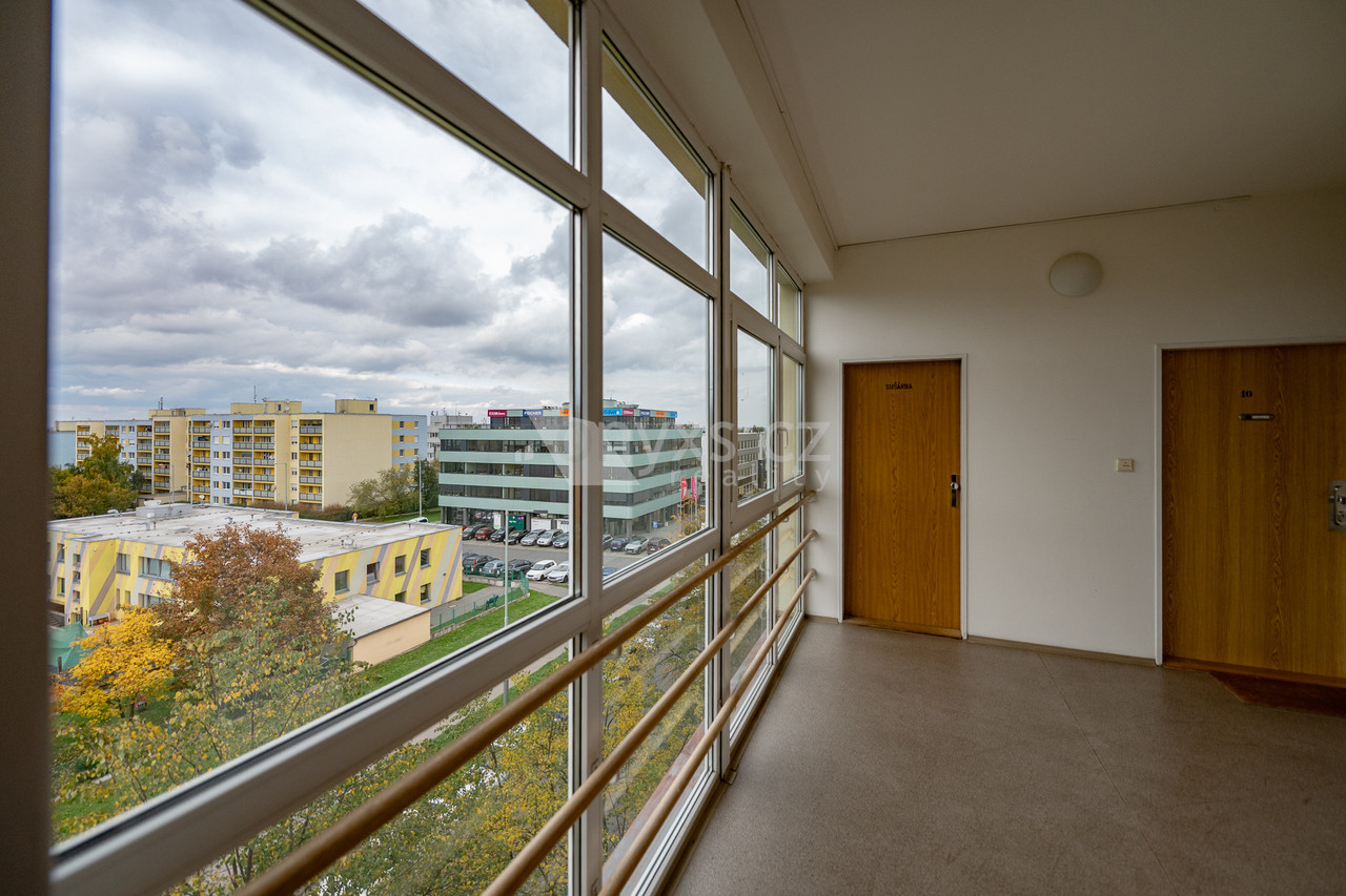 Byt se nachází v nízkopodlažní budově s výtahem, jde o novostavbu z roku 2000. Byt je mimořádně prostorný, světlý a tichý. Byt je čerstvě po rekonstrukci, je zde nová kuchyňská linka včetně spotřebičů, repasované podlahy, čerstvá bílá výmalba.
