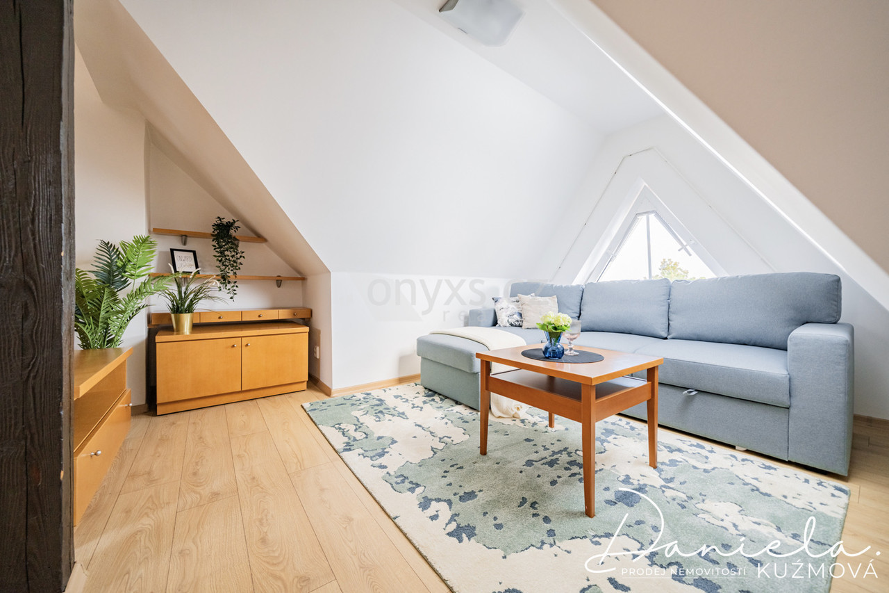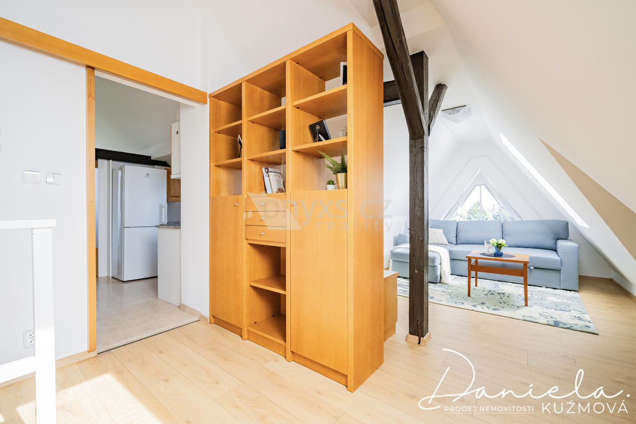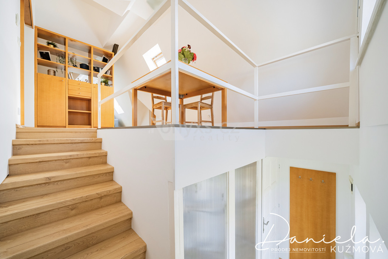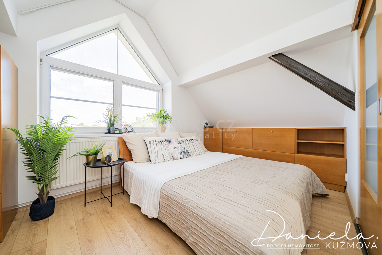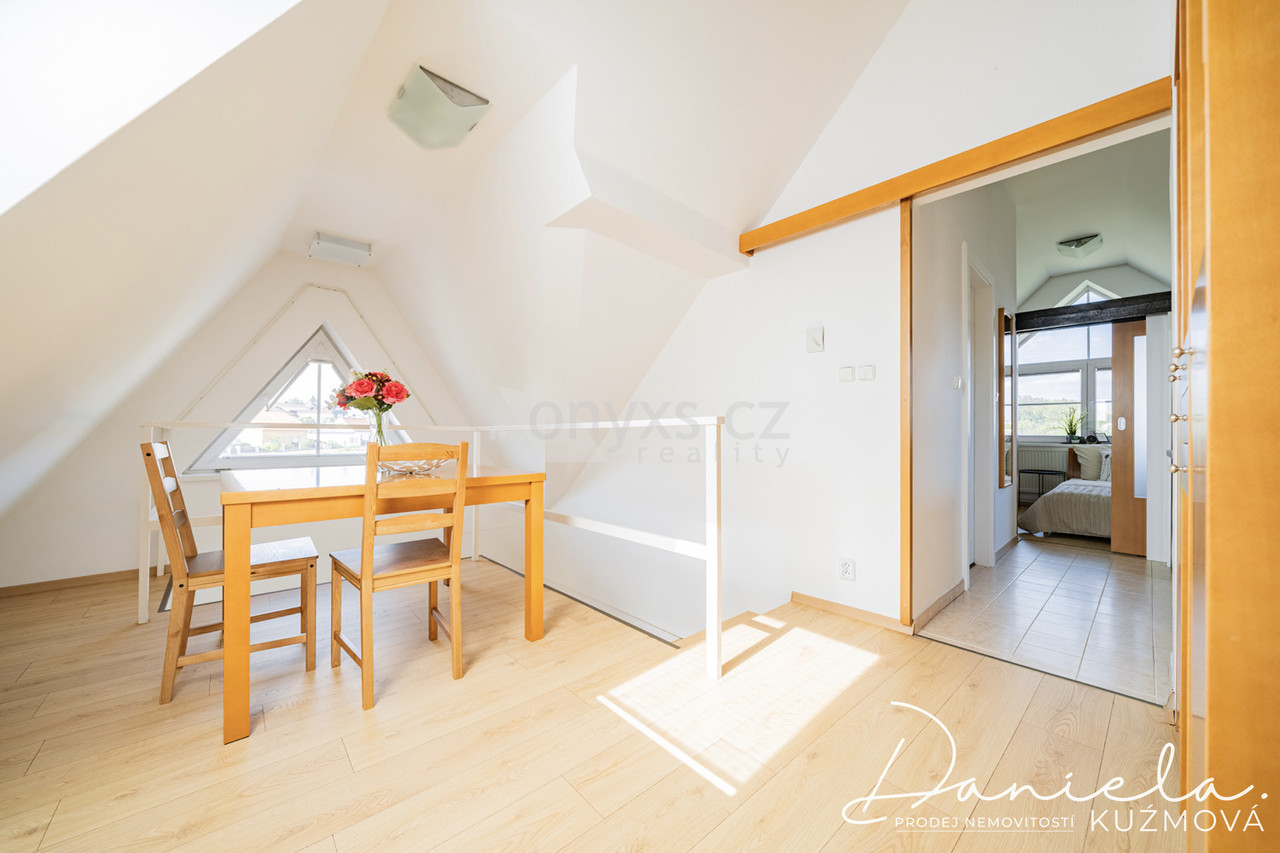 Podnájem kompletně vybaveného bytu 2+kk, 61m2 v podkroví vily se zahradou ve vilové zástavbě v blízkosti metra a vlaku.