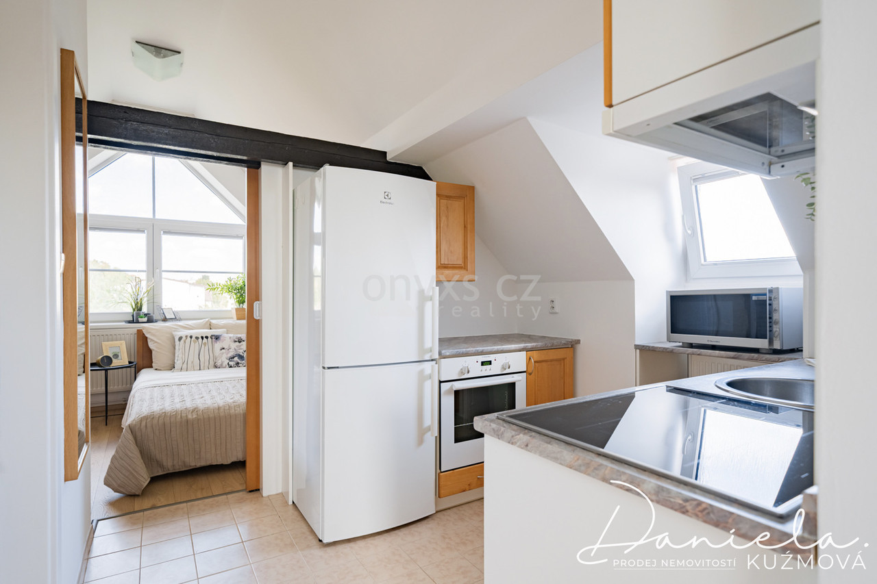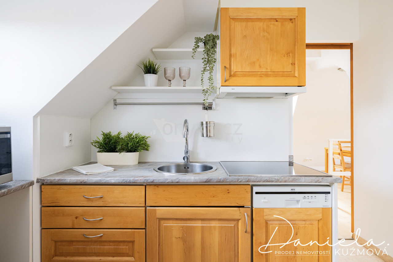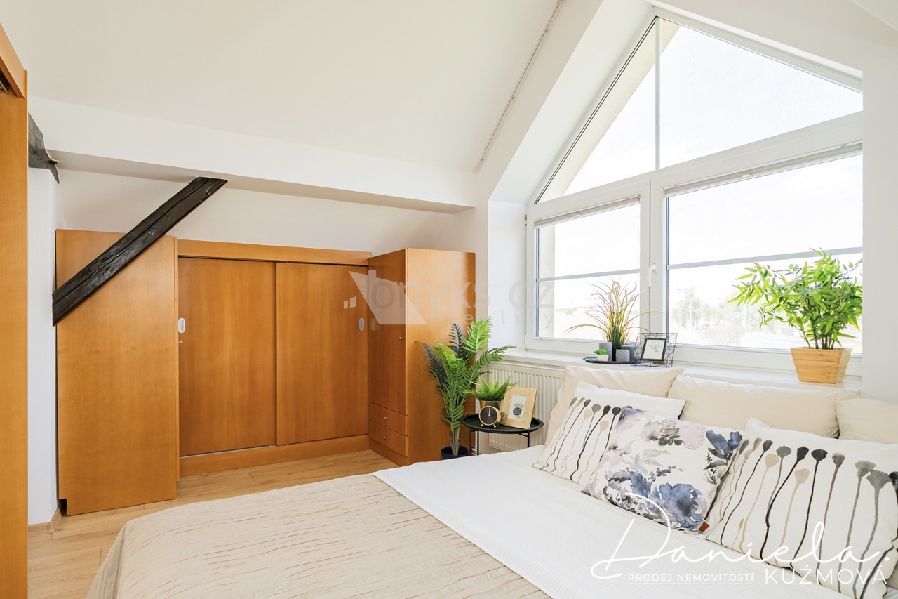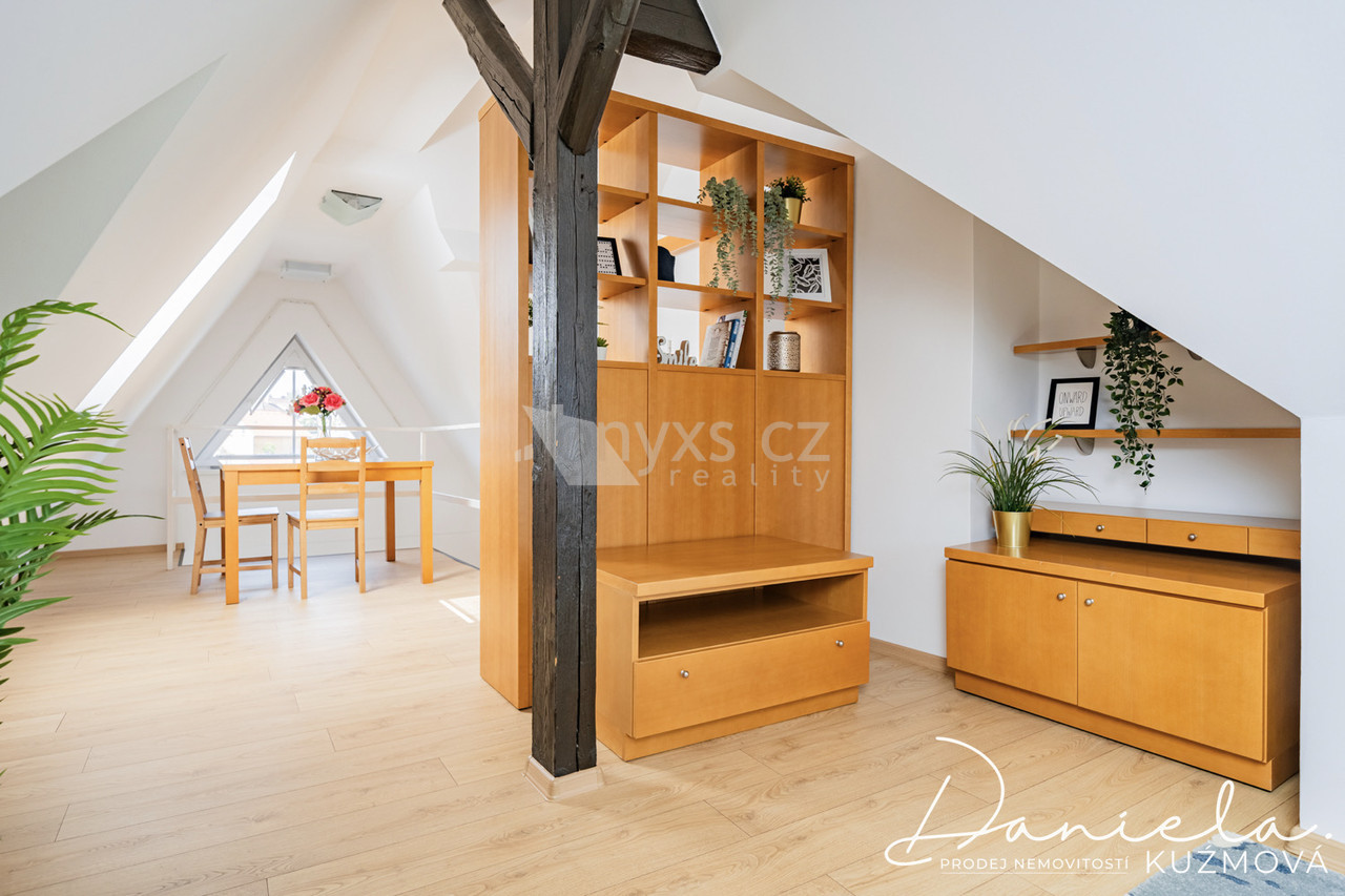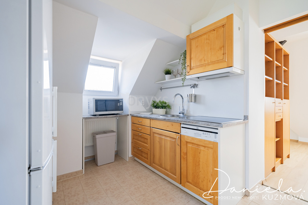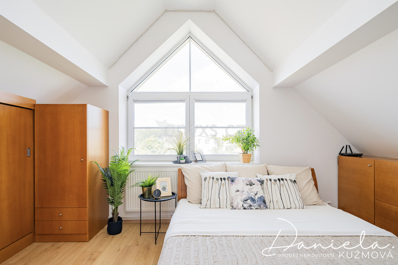 Podnájem kompletně vybaveného bytu 2+kk, 61m2 v podkroví vily se zahradou ve vilové zástavbě v blízkosti metra a vlaku.