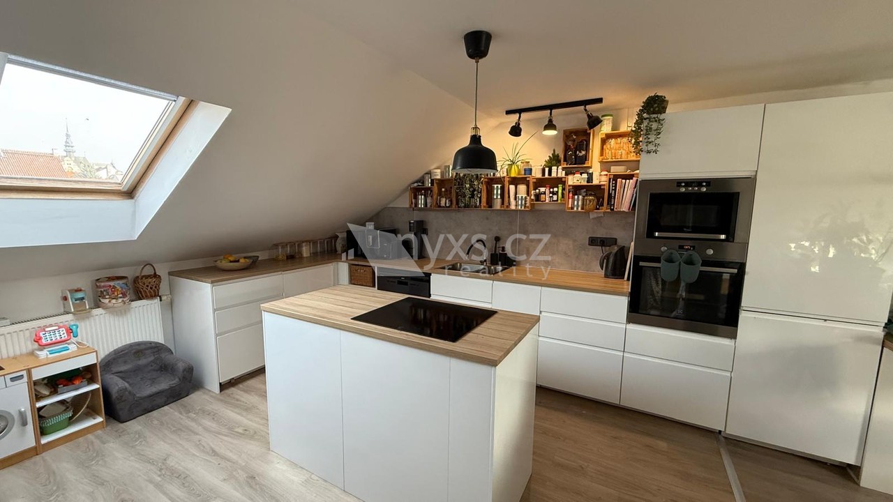 Prodej hezkého, podkrovního bytu v cihlovém domě 3+1 87 m2 + sklep 13 m2, Stehlíkova, Slaný