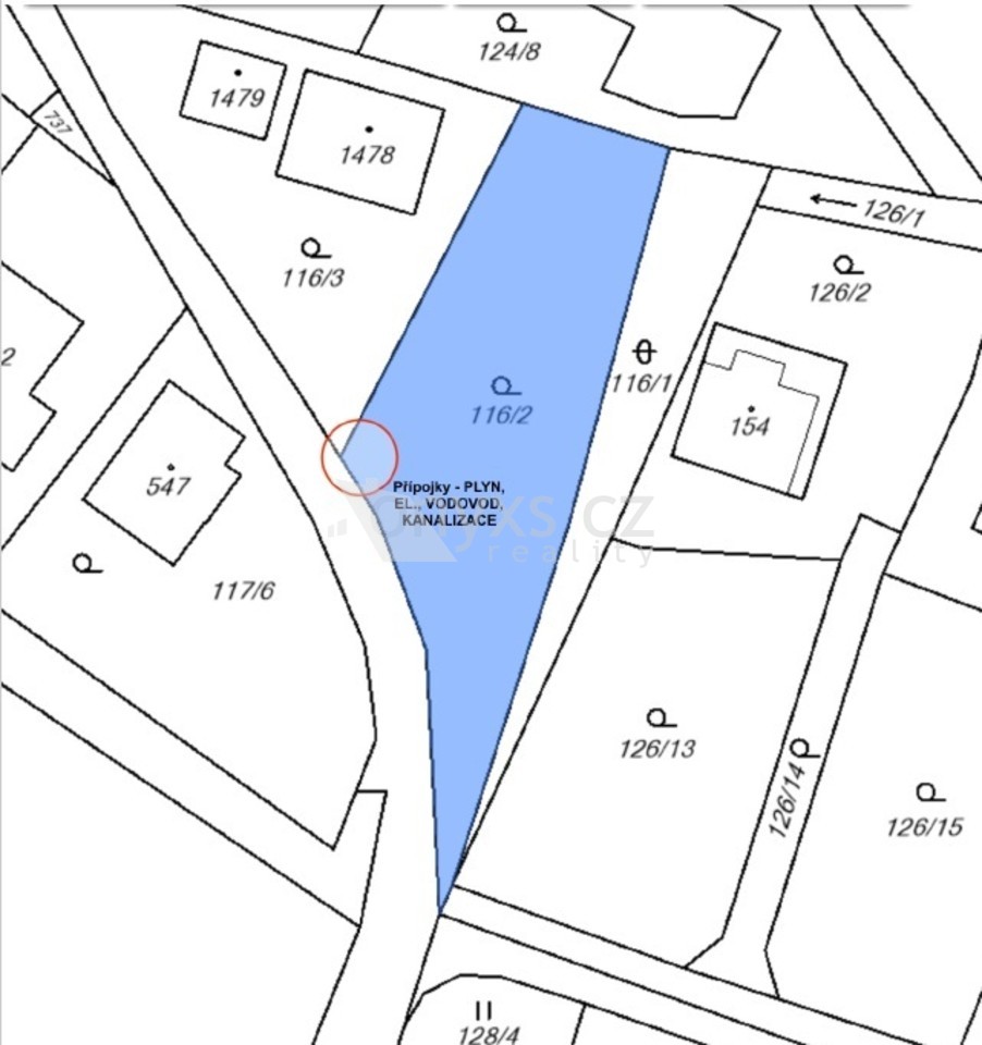 Pozemek o výměře 1017 m2 má příjemnou jižní orientaci v mírném svahu. K pozemku vede asfaltová obecní cesta, je ze tří stran oplocen. Sítě je možné připojit na jižní hranici pozemku.