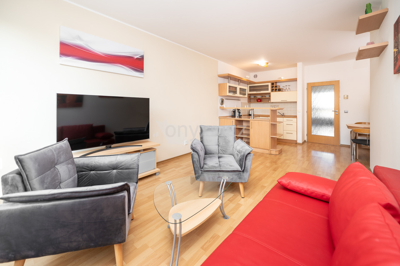 Byt se nachází ve 3. nadzemním podlaží novostavby s výtahem. V bytě je vstupní chodba ze které se vchází do obývacího pokoje s kuchyňským koutem, samostatného WC, koupelny s vanou, komorou a ložnice. Byt je zařízený. K bytu náleží jedno parkovací stání v domě. Veškeré občanské a sociální služby v ne...