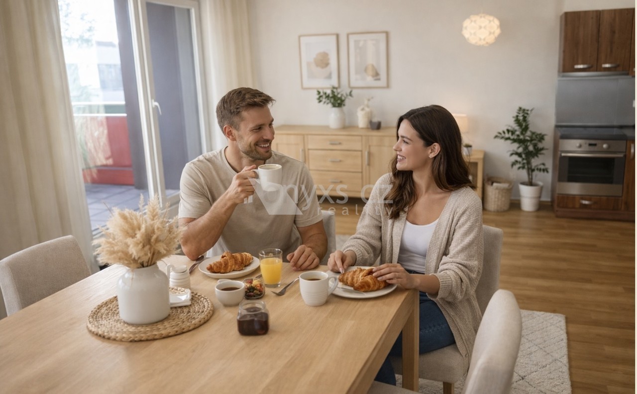 Byt má celkovou plochu 60 m² a k němu náleží balkon o velikosti 5 m², orientovaný do klidného vnitrobloku. Dispozice bytu je velmi praktická a světlá.