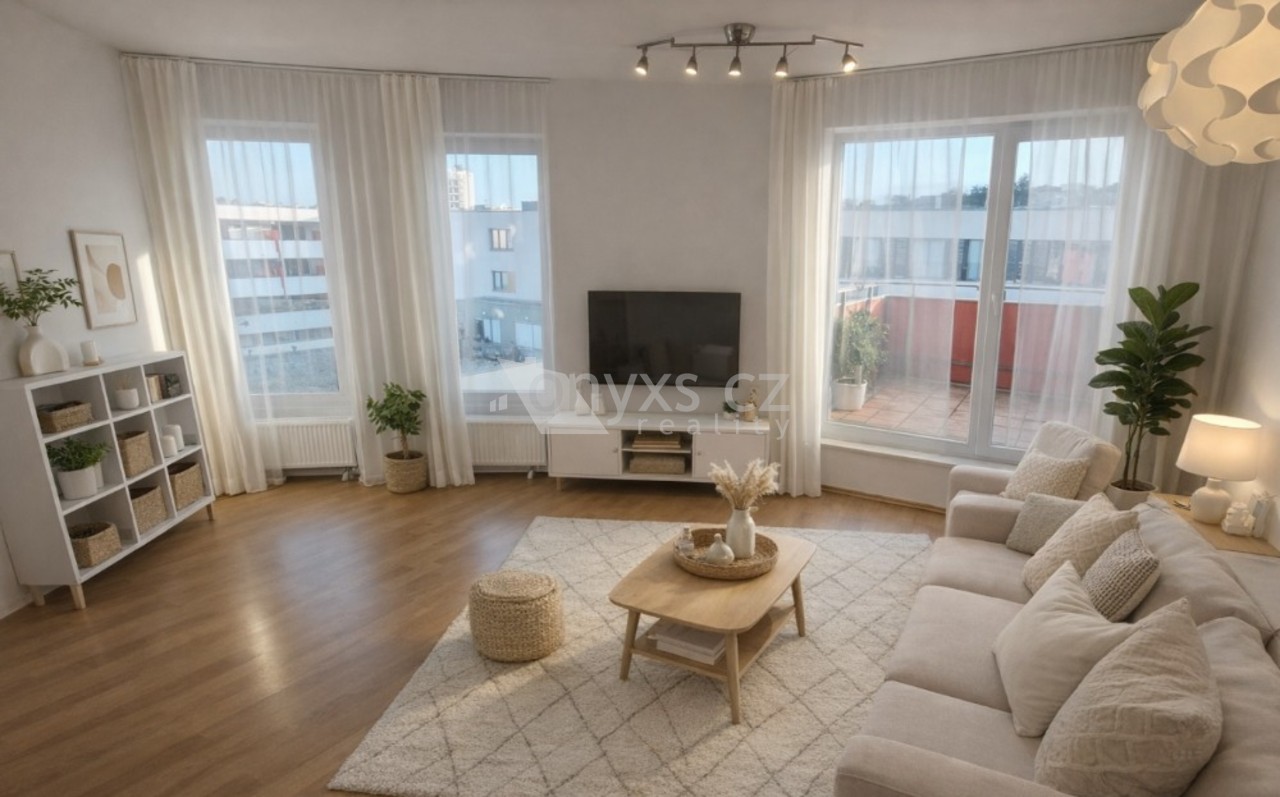Nabízíme k pronájmu moderní byt 2+kk s balkonem, garážovým stáním a sklepem v oblíbené novostavbě Belárie Modřany.