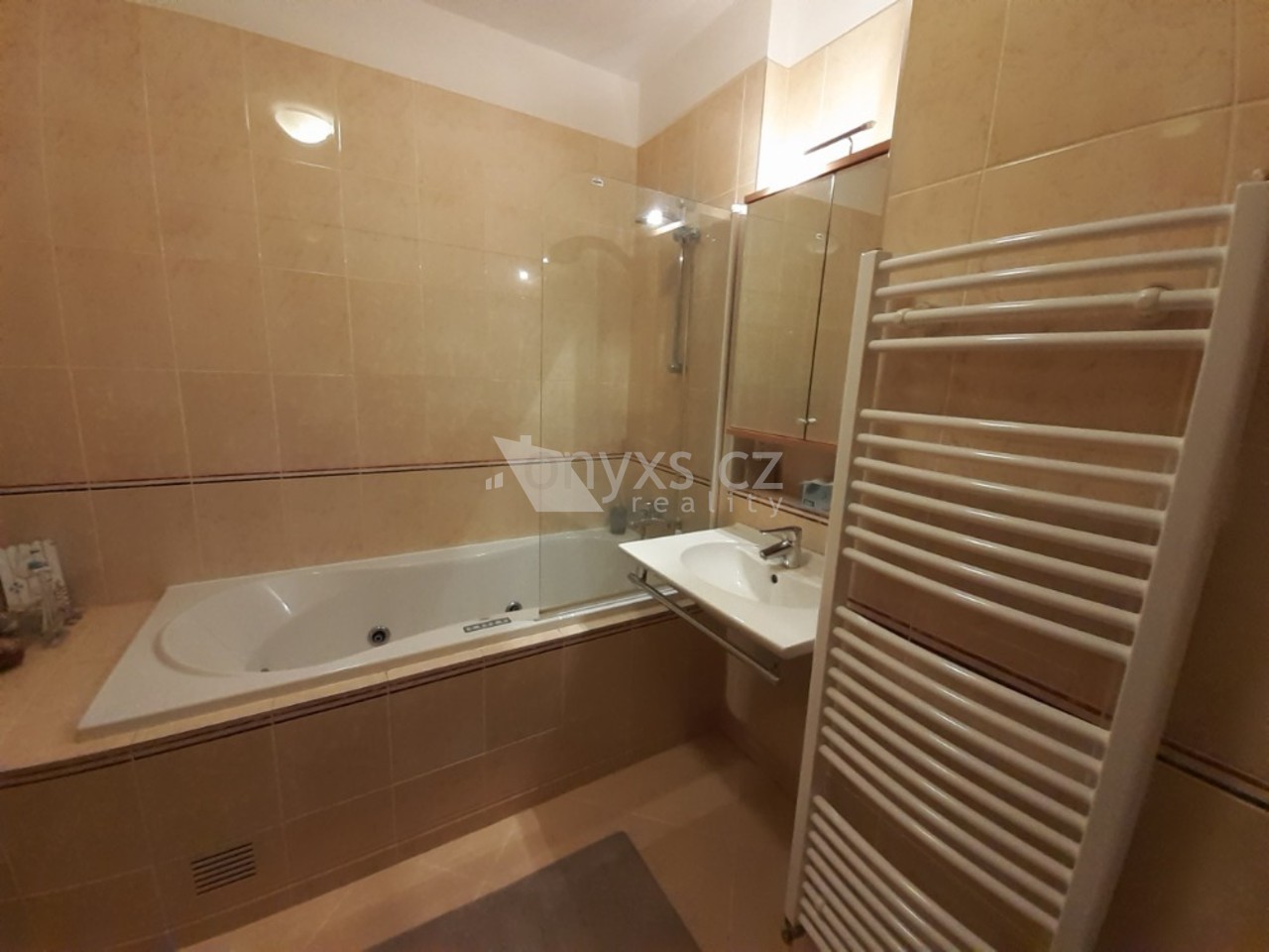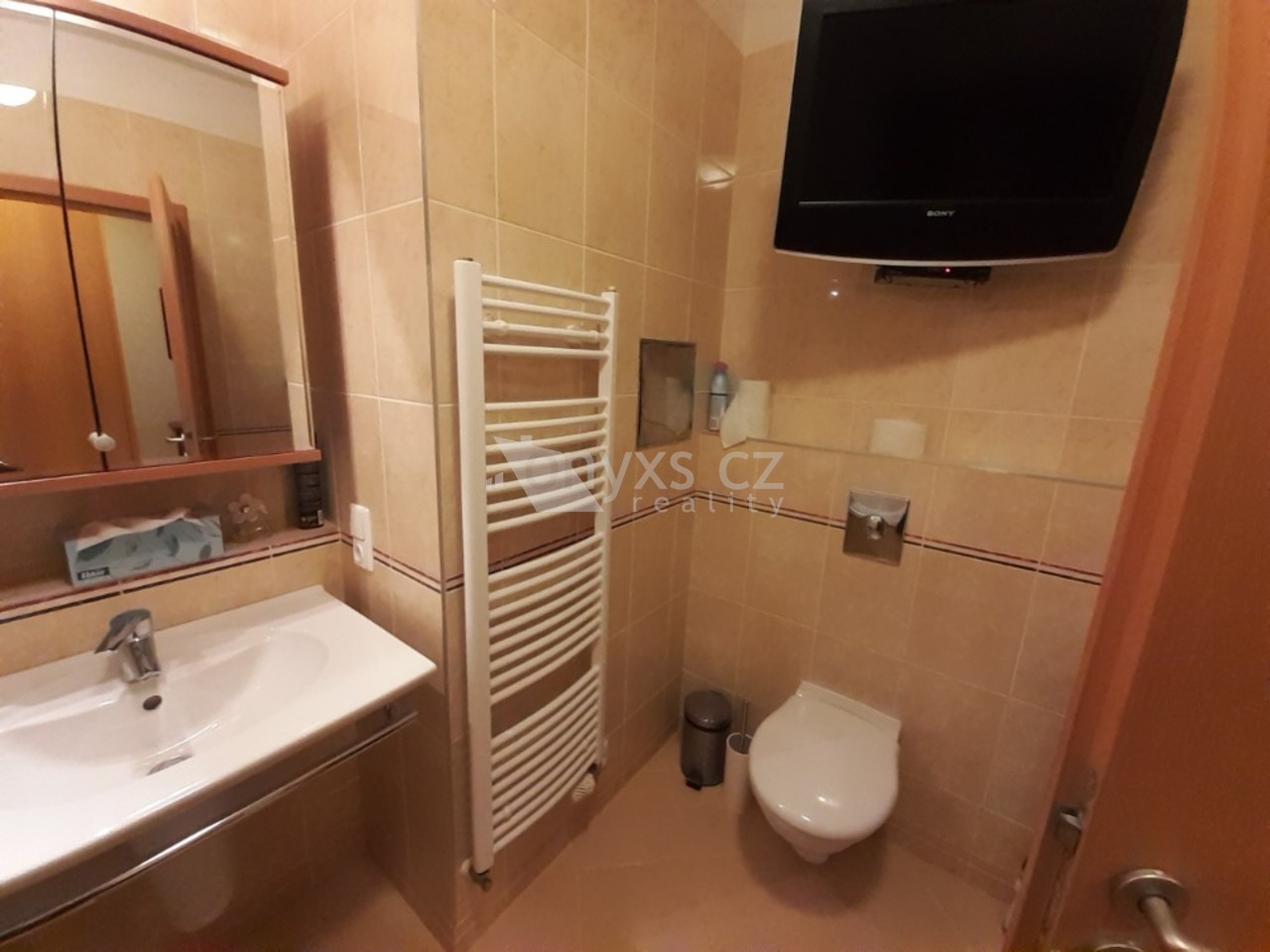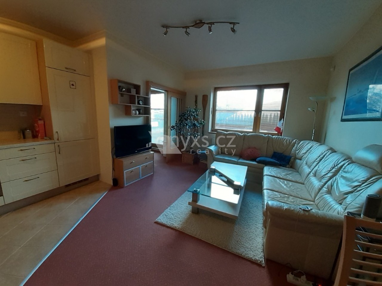 Byt disponuje prostornou chodbou s vestavěnými skříněmi, koupelnou s masážní vanou, TV, WC a pračkou. Obývací prostor nabízí kompletně vybavenou kuchyňskou ...