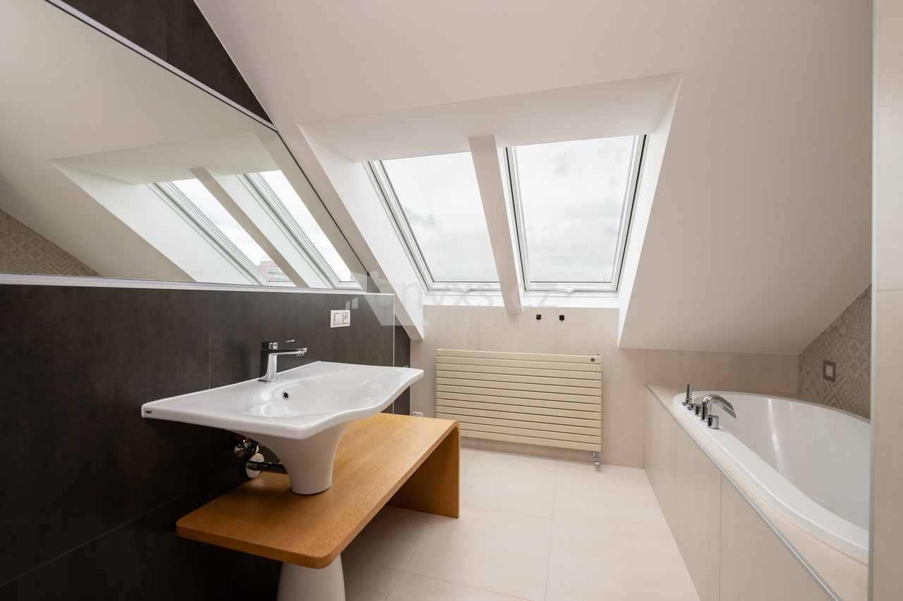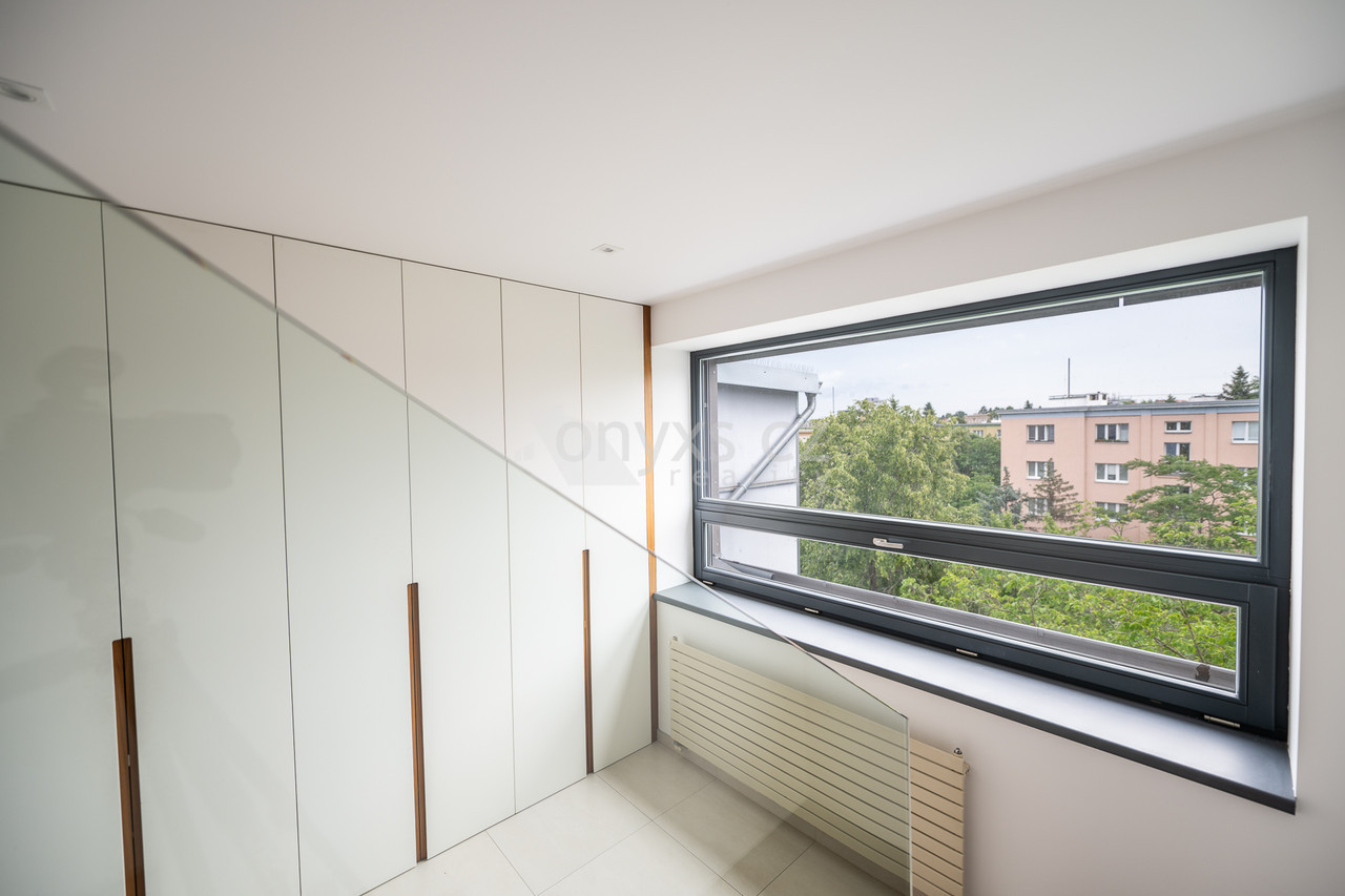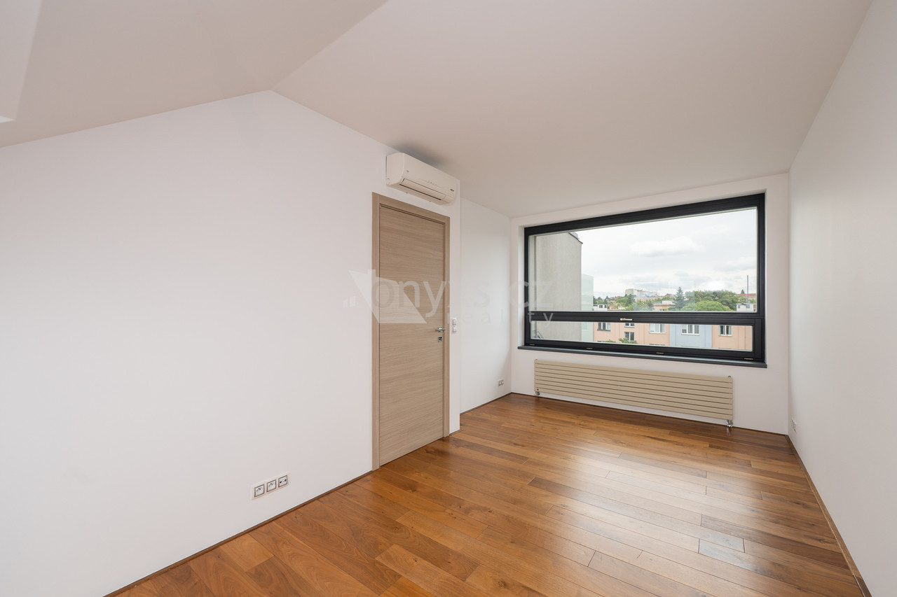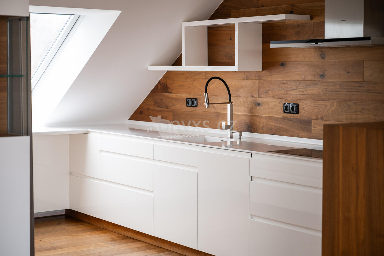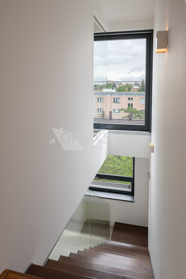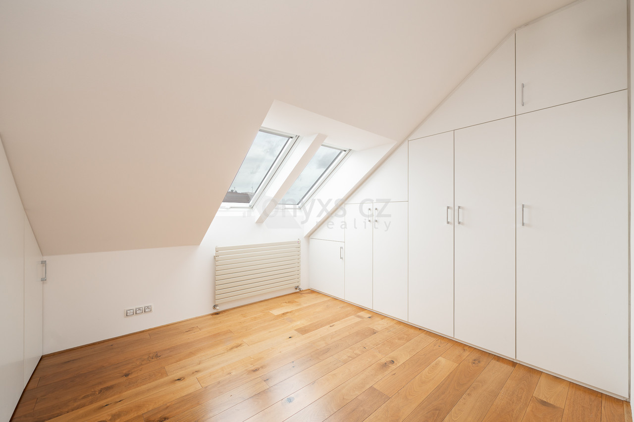 Nabízíme k pronájmu výjimečně světlý a klimatizovaný byt 4+kk o ploše 133 m² s prostornou terasou (terasa 14 m², byt 119m2), situovaný v naprostém klidu posledního patra cihlového domu.