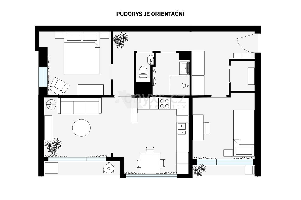Každý metr čtvereční má svůj smysl. Dispozice bytu byla promyšleně upravena architektem tak, aby byl prostor využitý na maximum a vy jste si užili přirozené a pohodlné bydlení.