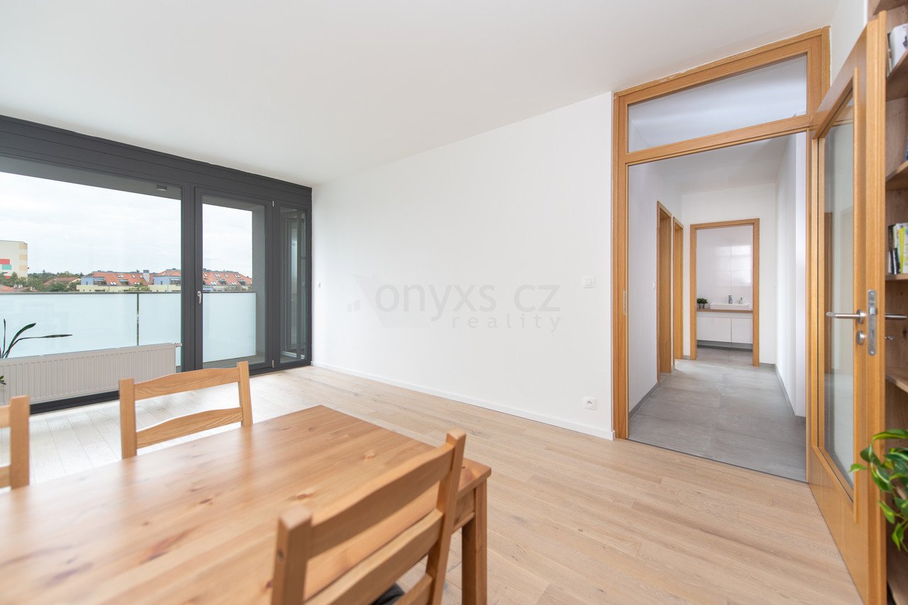 Nabízíme k prodeji hezký světlý byt 3+kk s dvěmi lodžiemi, sklepem a vlastním parkovacím stáním v novostavbě v dobře dostupné lokalitě pražského Chodova. Byt se nachází ve 3 nadzemním podlaží bytového domu s výtahem. V bytě je chodba, ze které se postupně vchází do všech místností. V první místnosti je obývací pokoj s kuchyňským koutem, je zde vstup na první lodžii, na kterou se dá vstoupit i z dalšího pokoje, druhý samostatný pokoj má také svoji lodžii. Oba pokoje jsou neprůchozí. Dále je zde prostorná koupelna s vanou, sprchovým koutem a WC. Další samostatné WC je v chodbě naproti obývacího pokoje a dále je komora. Celková podlahová plocha bytu je 74,8 m2, každá lodžie má plochu 4 m2. K bytu náleží jedno parkovací stání a sklep 4 m2. Další parkování je možné za domem. Veškerá občanská vybavenost v nejbližším okolí.