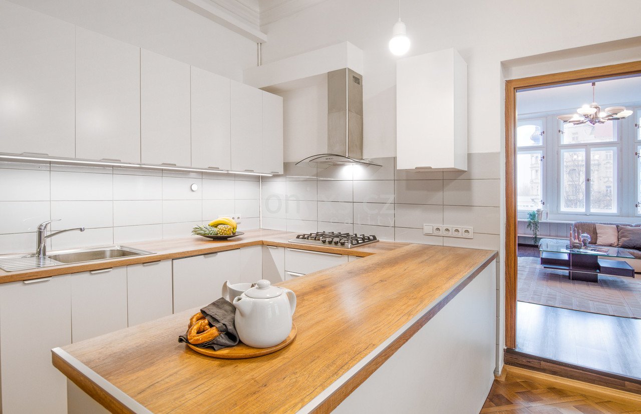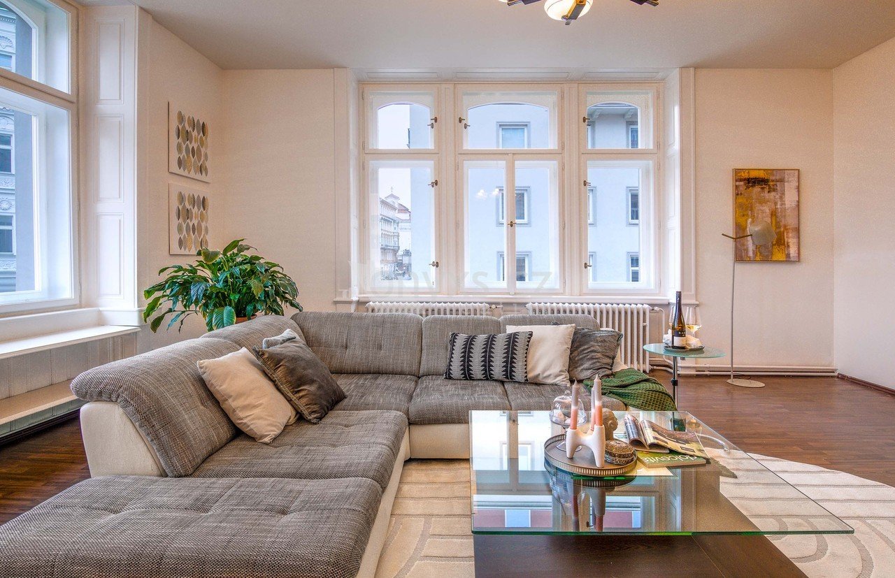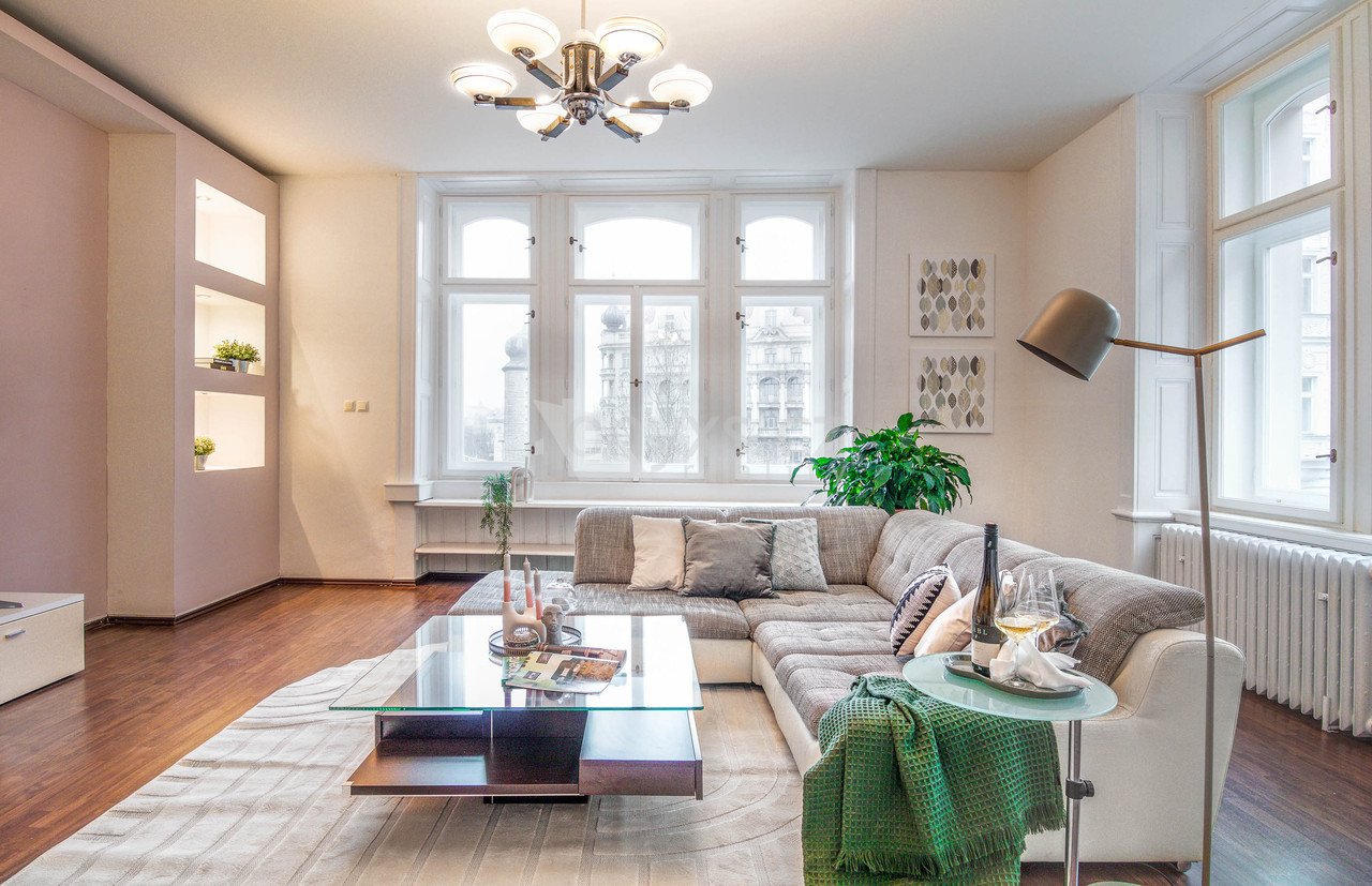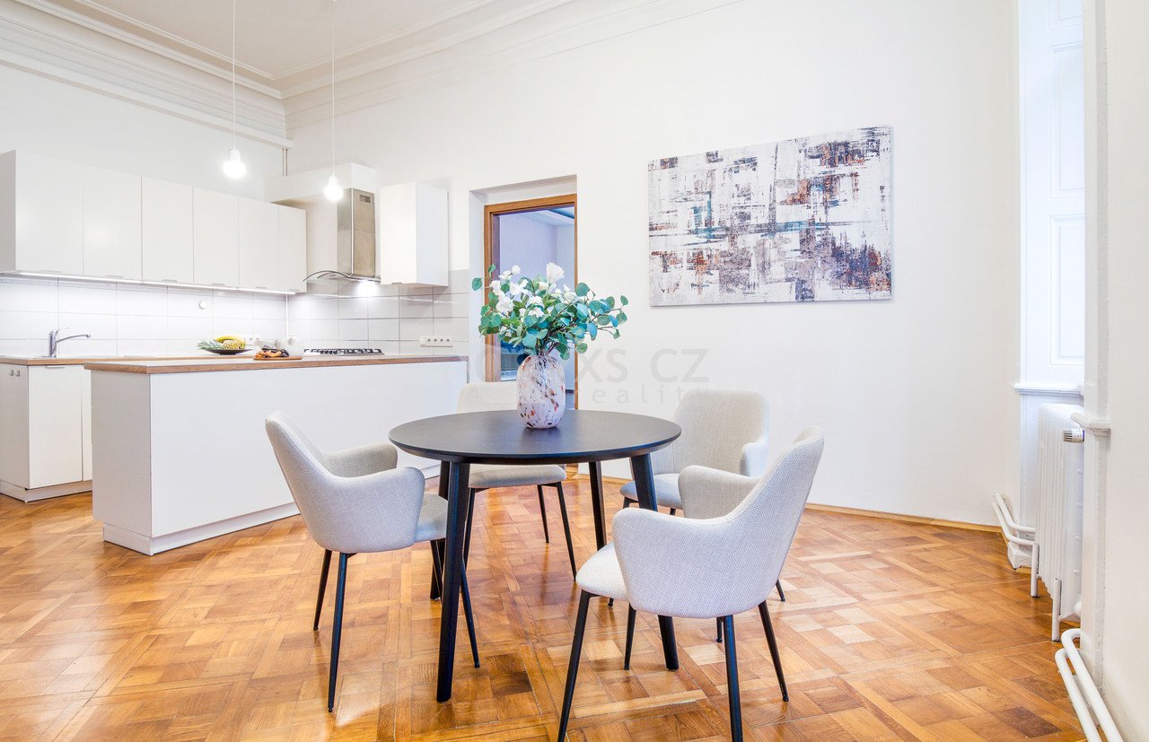 Byt 4+1 (152 m2) se nachází ve 2. patře historického domu z roku 1906.