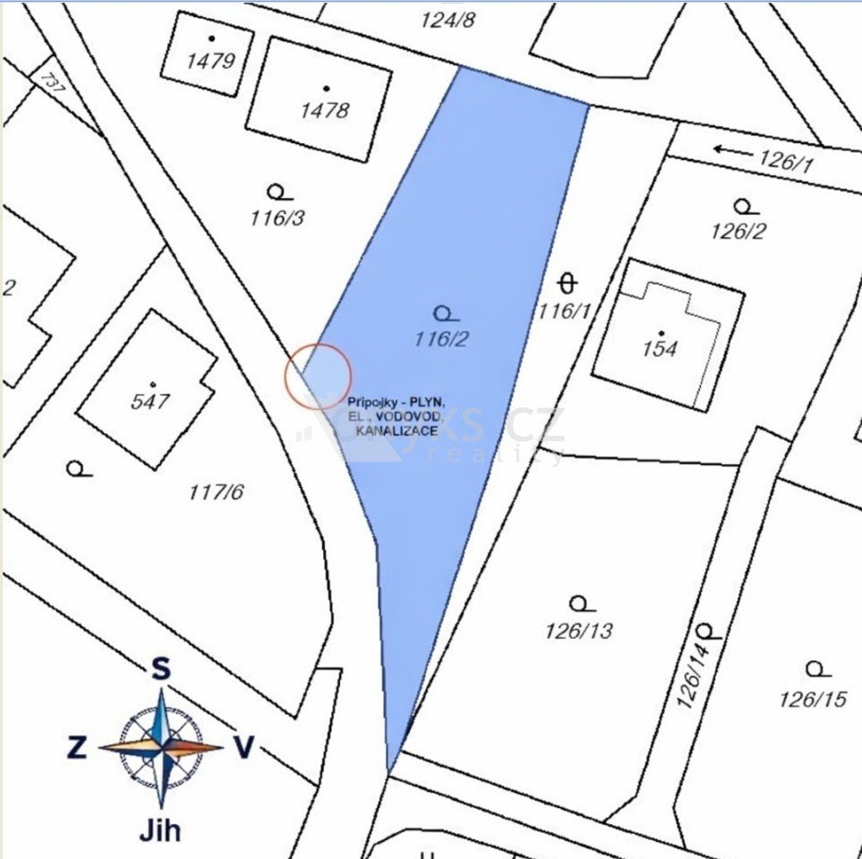 Pozemek o výměře 1017 m2 má příjemnou jižní orientaci v mírném svahu. K pozemku vede asfaltová obecní cesta, je ze tří stran oplocen. Sítě je možné připojit na jižní hranici pozemku.