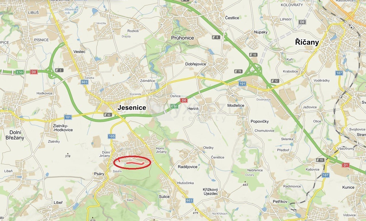Prodej pozemku v Psárech, jižní svah, stará zástavba, klidná ulice. Nabízíme prodej stavebního pozemku s projektem v obci Psáry, KÚ Dolní Jirčany.