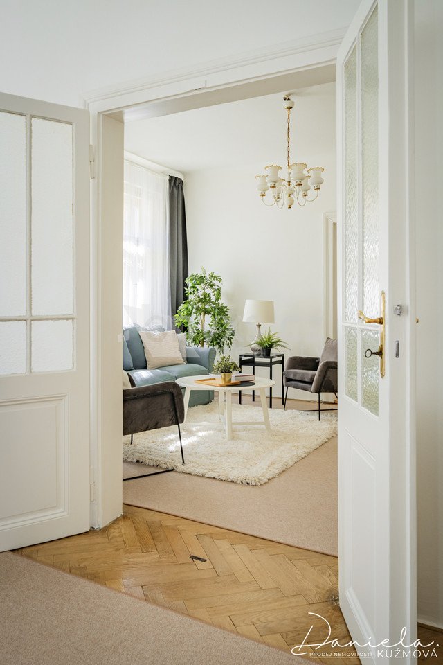 Vstupte do prostoru, kde každý detail – od původních dřevěných oken po krásné parkety – vypráví příběh pražských domů a vytváří jedinečnou atmosféru elegance.