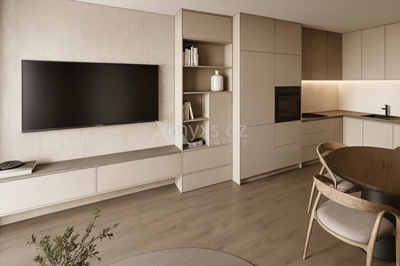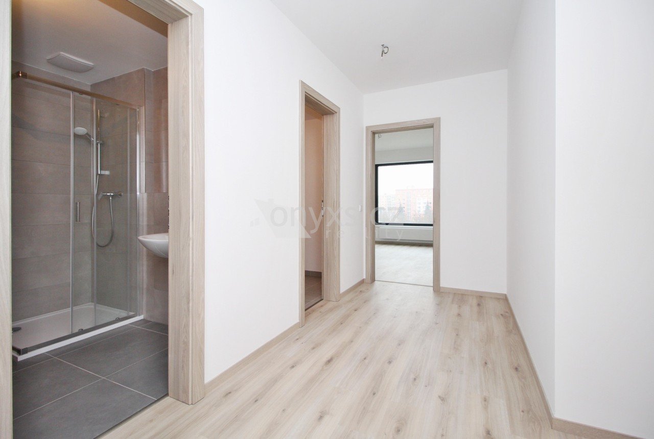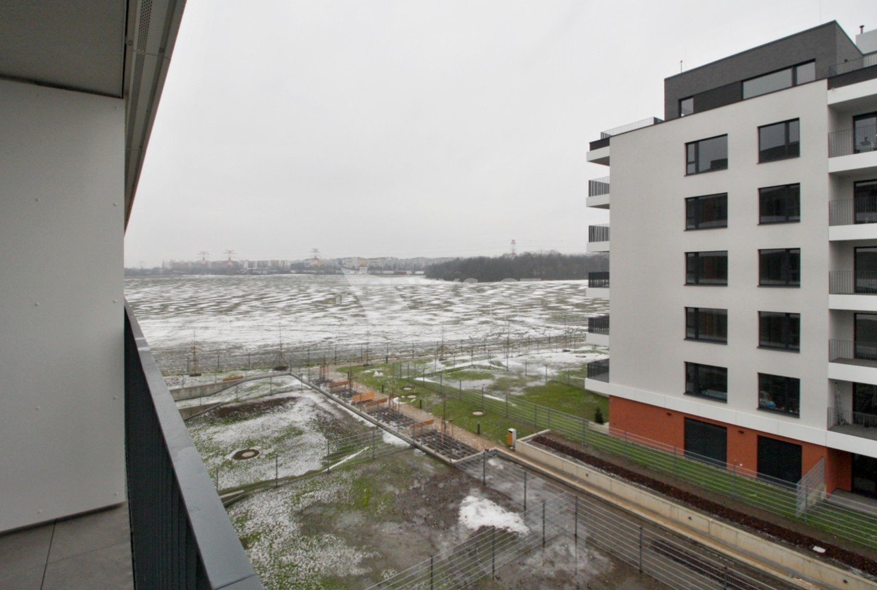 Prostorný byt v pěkné nové čtvrti Letňany s dispozicí 2+kk s terasou, výměra 63 m2, 5NP/7NP, výtah, sklepní kóje, Praha 9 Letňany, ulice Tupolevova Pronájem moderního nově zařízeného bytu s dispozicí 2+kk s terasou, výměra 63 m2, 4 patro s výtahem. Dvě samostatné neprůchzí místnosti přístupné z předsíně vybavenné s vetavěnou skříní a věšákovou stěnou s botníkem. V obývacím pokoji kuchyňský kout s vestavěnými spotřebiči. Koupelna se sprchovým koutem a WC příprava pro umístění pračky, sušičky další úložné prostory v komoře. Ložnice s výhledem do parku. Vytápění a ohřev teplé vody centrální, sklepní kóje. Možnost pronájmu parkovacího stání v suterénu domu. Projekt Letnian.
