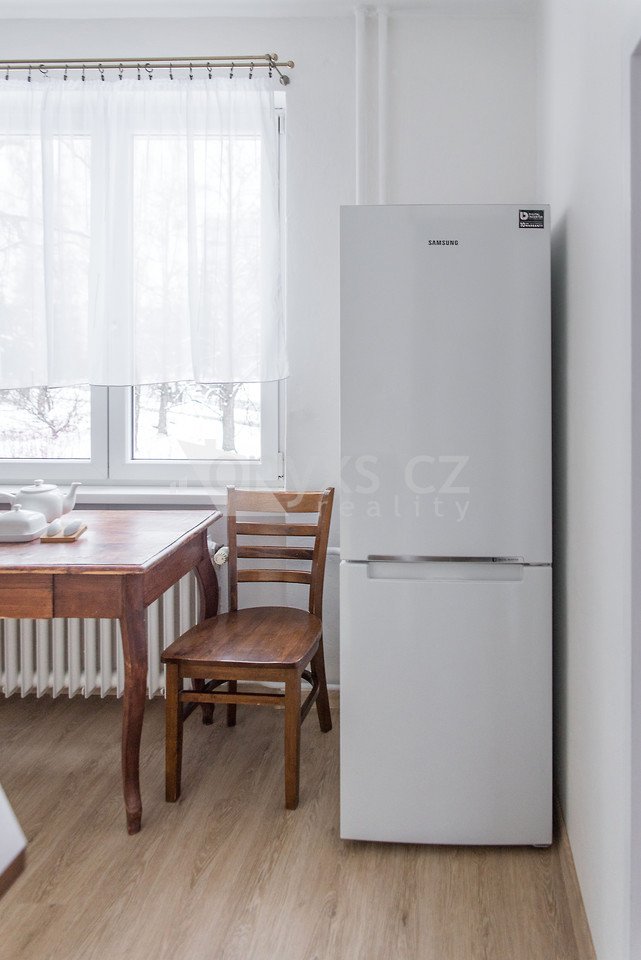 Byt má po celé své ploše letos položené vinylové podlahy, sádrokartonové podhledy s moderním LED osvětlením, novou koupelnu se sprchovým koutem a oddělené WC. Vstupní chodba s originálními klenbami disponuje novou vestavnou skříní s botníkem a nástěnným věšákem. Prostorný dětský pokoj je vybaven nábytkovou stěnou s rozsáhlým úložným prostorem. Zachovalá kuchyňská linka je vybavena myčkou, ledničkou s mrazákem, digestoří, plynovou karmou, stolem a židlemi. Byt je kompletně vymalován, radiátory a zárubně nalakovány. K bytu patří také sklepní kóje v přízemí. Je možno využít výtahu i kočárkárny.