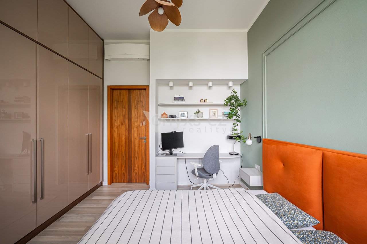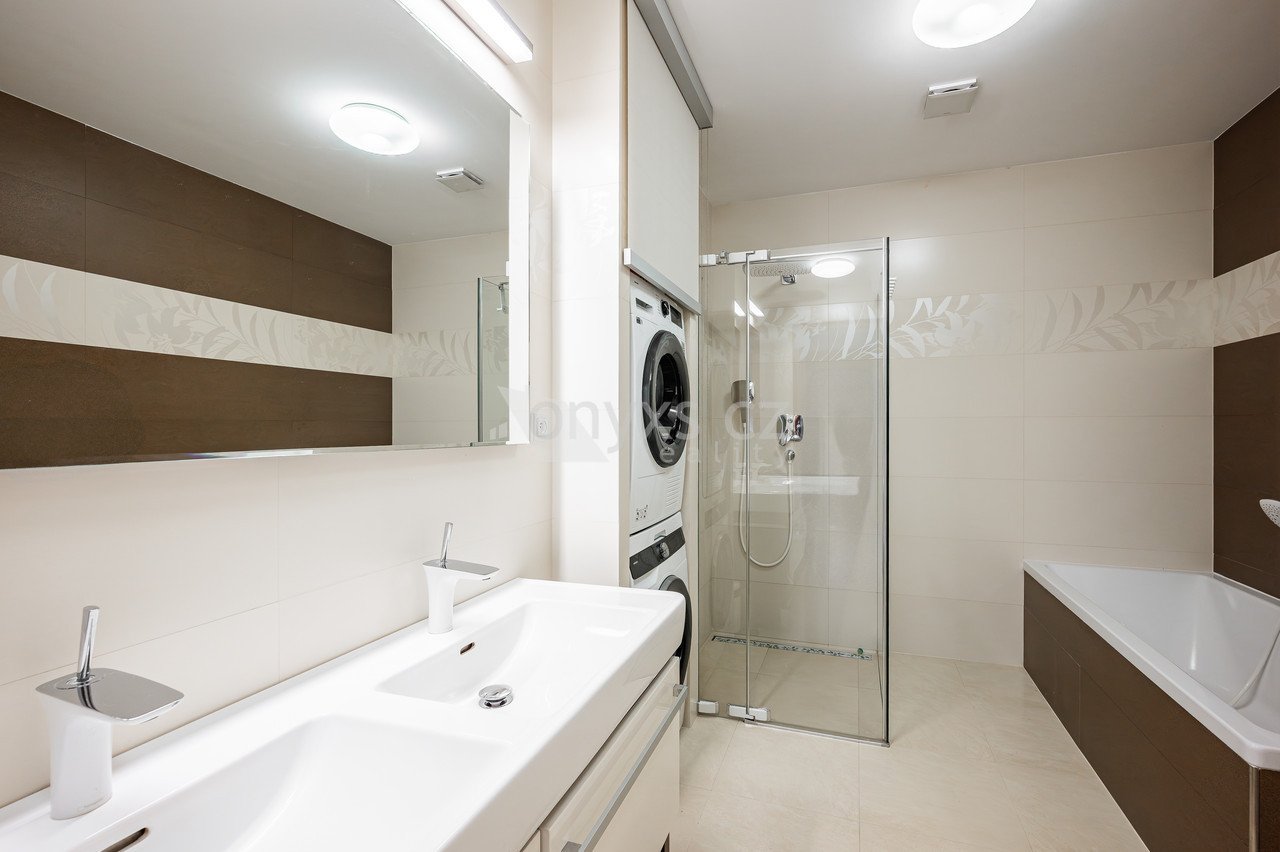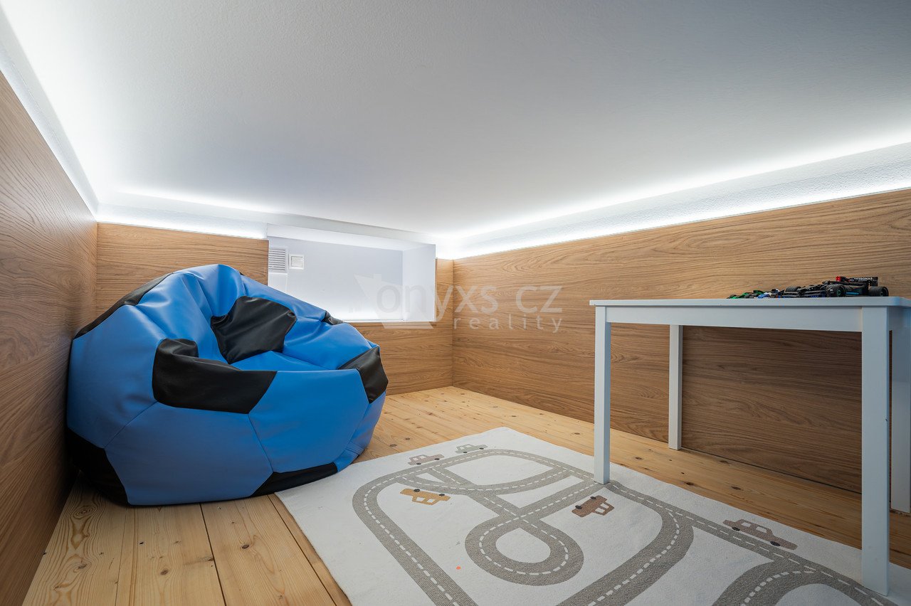 Odpočinková část bytu tvoří 2 samostatné ložnice. Větší z ložnic disponuje vestavěnými skříněmi, plnohodnotným pracovním místem pro práci z domova a balkonem s výhledem do okolní zeleně. I v této místnosti je k dispozici klimatizační jednotka. Menší ložnice poskytuje dostatek prostoru pro 2 postele, najdeme zde další vestavěné skříně a galerii, která může sloužit jako herna pro děti, menší domácí kino či jiný multifunkční prostor. Součástí bytu je dále koupelna s vanou, sprchovým koutem a toaletou, další oddělená toaleta a komora.