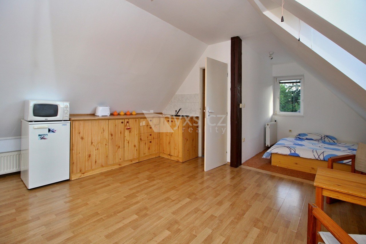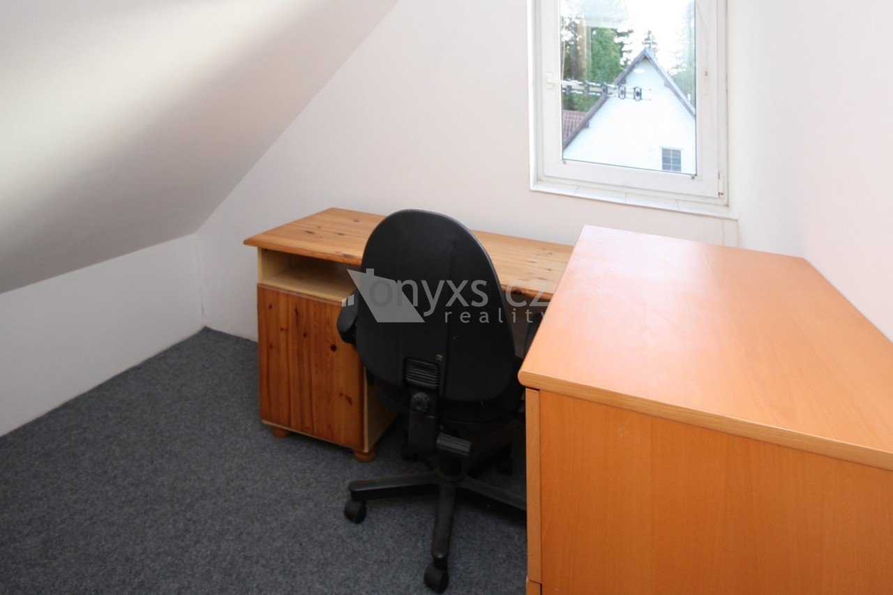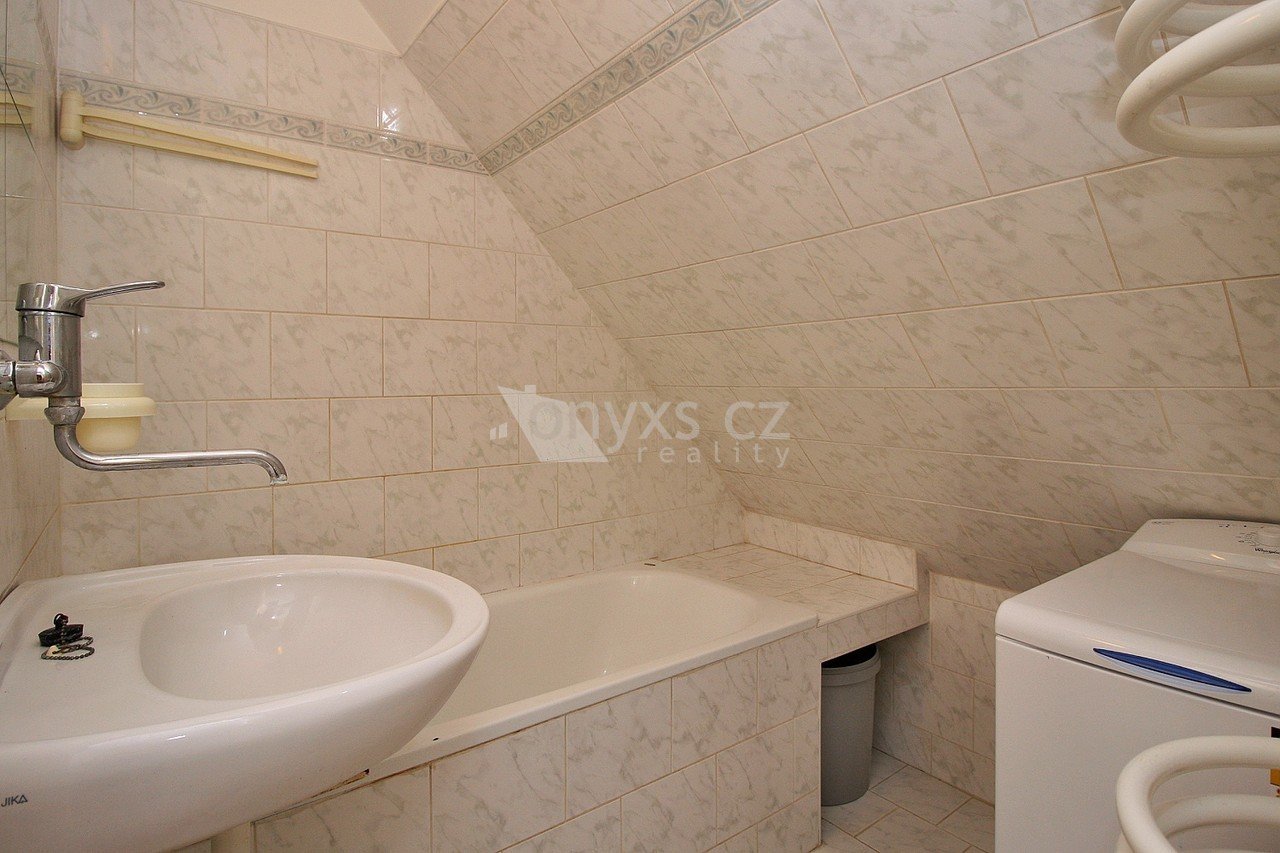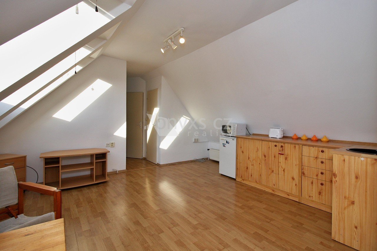 Pronájem bytu v rodinném domě dispozice 1+1, výměra 45 m2,3NP, ulice Krovova, Praha 9 Klánovice Jedná se o podkrovní byt v rodinném domě s dispozicí 1+1, výměra 45 m2, 3.parto s možností užívání terasy. Vstup do bytu je po schodišti do předsíně, obývací pokoj s kuchyňským koutem vybaveným sporákem s troubou, klimatizační jednotka, jeden samostatný pokoj, koupelna s vanou, WC, pračka, šatna. Vhodné jako startovací byt pro jednu osobu. Jedná se o velmi klidnou lokalitu ve vilové čtvrti se skvělým spojením do centra Prahy jednak vlakem, ale také autobusy na Černý Most. K nastěhování 1.11.2025