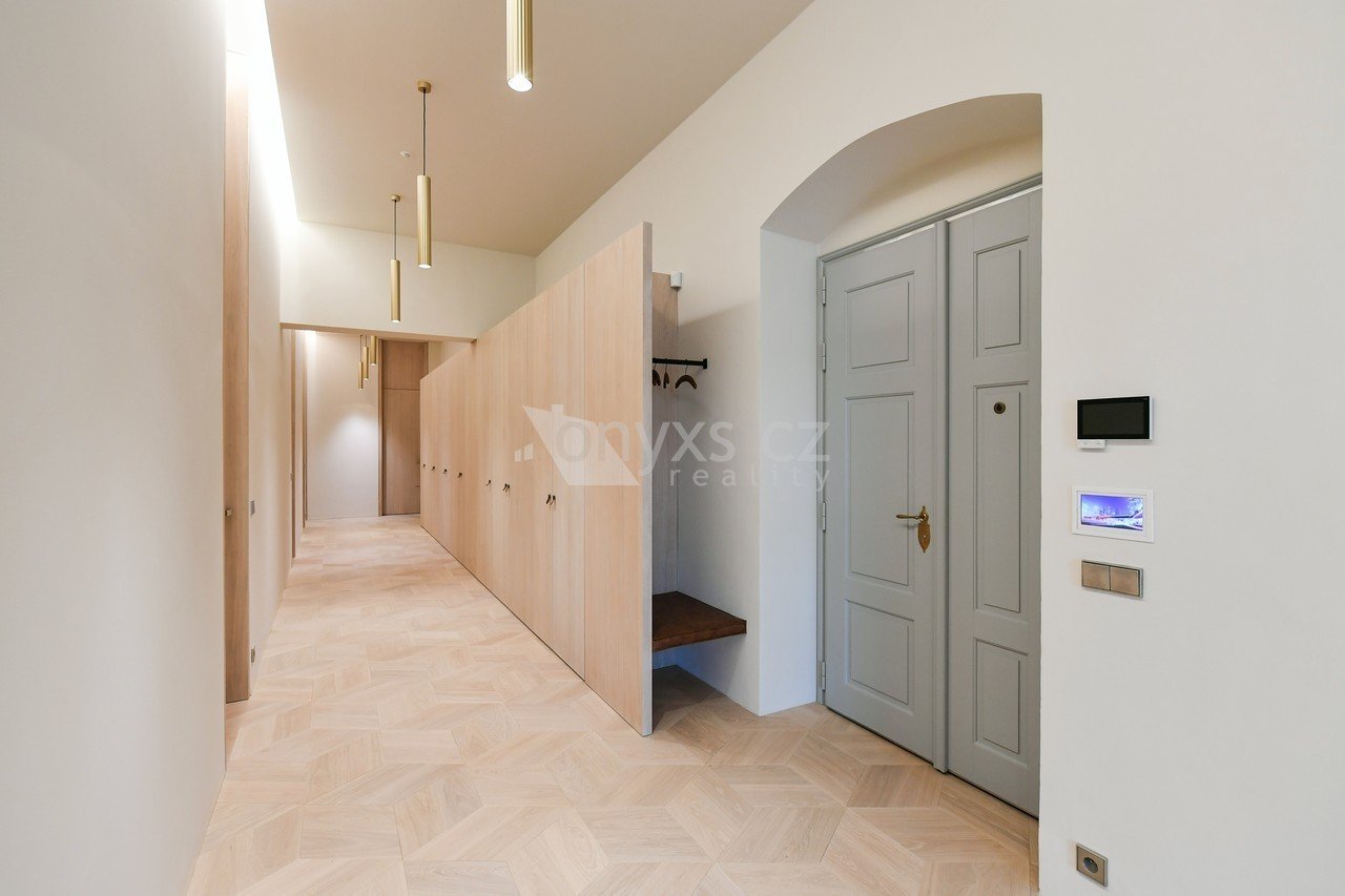 Samozřejmostí je výtah a služby concierge 24/7, sklepní kóje (20 m2) a parkování pro 2 automobily v zakladači. Žádaná lokalita v blízkosti Pařížské ulice, Dvořákova nábřeží či nově otevřeného hotelu Fairmont. Byt poskytuje jedinečný prostor k bydlení s maximálním zachováním charakteru místa a je k dispozici k nastěhování 01.03.2026. Prohlídky jsou možné ihned.