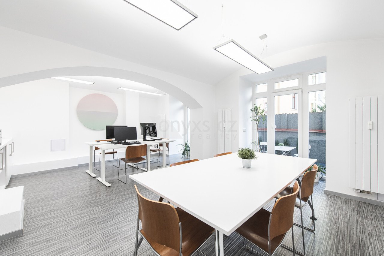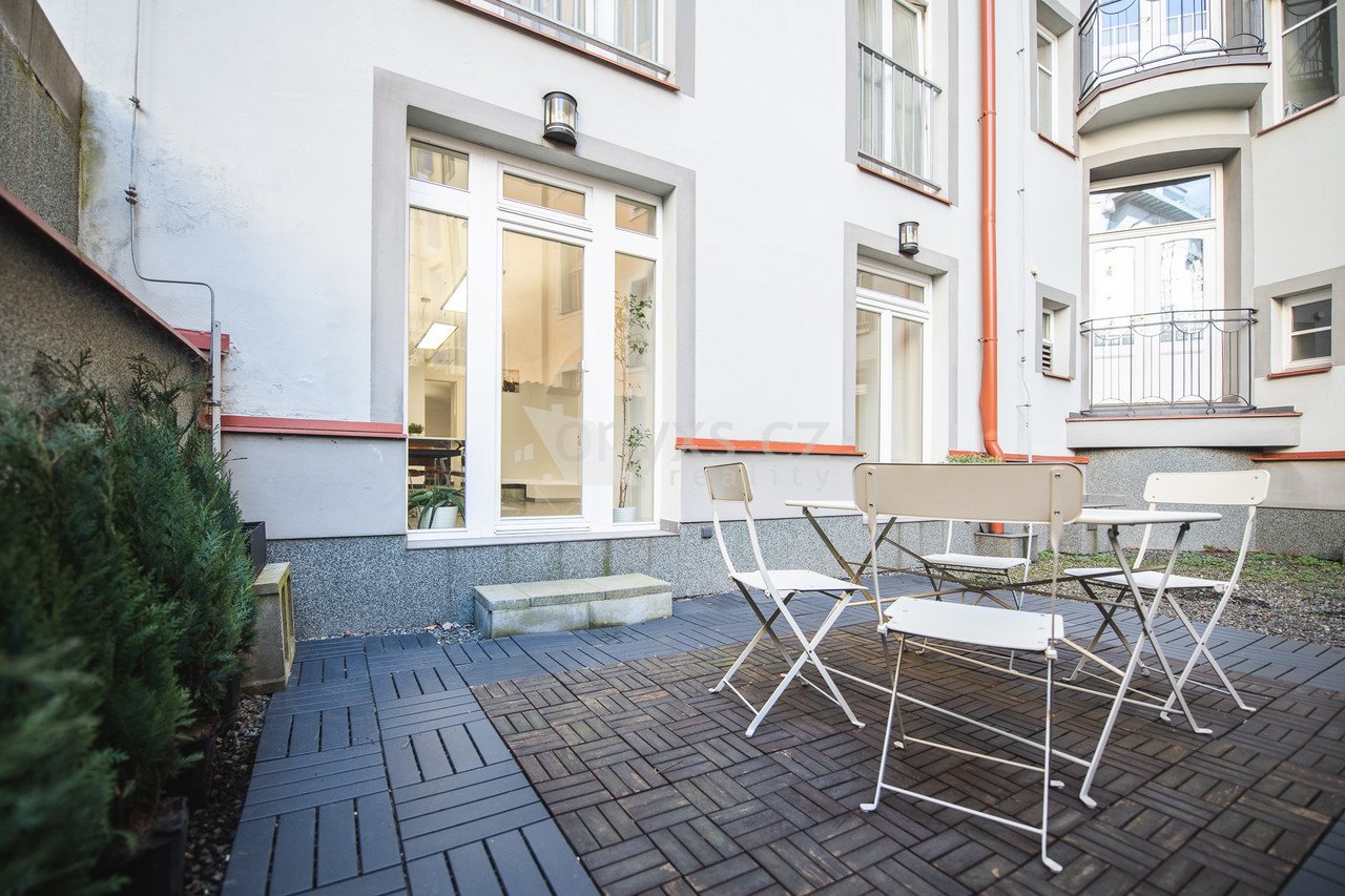 Nabízíme k pronájmu krásné kancelářské prostory o celkové podlahové ploše 87 m2, v činžovním bytovém domě z roku 1910 v klidné části Prahy 3 - Žižkov. Rohový činžovní bytový dům z roku 1910 prošel rozsáhlou rekonstrukcí v roce 2013. Nebytové prostory jsou mimořádně vkusně zrekonstruovány, vhodné i pro velmi náročné klienty. Podlahy tvoří keramická dlažba a PVC, okna jsou dřevěná EURO, vstupní dveře jsou bezpečnostní, dále je zde designové osvětlení a na míru zhotovený nábytek. Vytápění a ohřev vody je zajištěn centrální kotelnou pro celý dům. Dispozičně jsou prostory řešeny centrální chodbou, ze které se vstupuje postupně do třech kanceláří, WC, koupelny se sprchovým koutem. Orientace nebytového prostoru je jižním směrem do ulice a severním směrem do vnitrobloku s dvorkem - terasou, který je jednotce k dispozici na základě dlouhodobé nájemní smlouvy s SVJ domu.