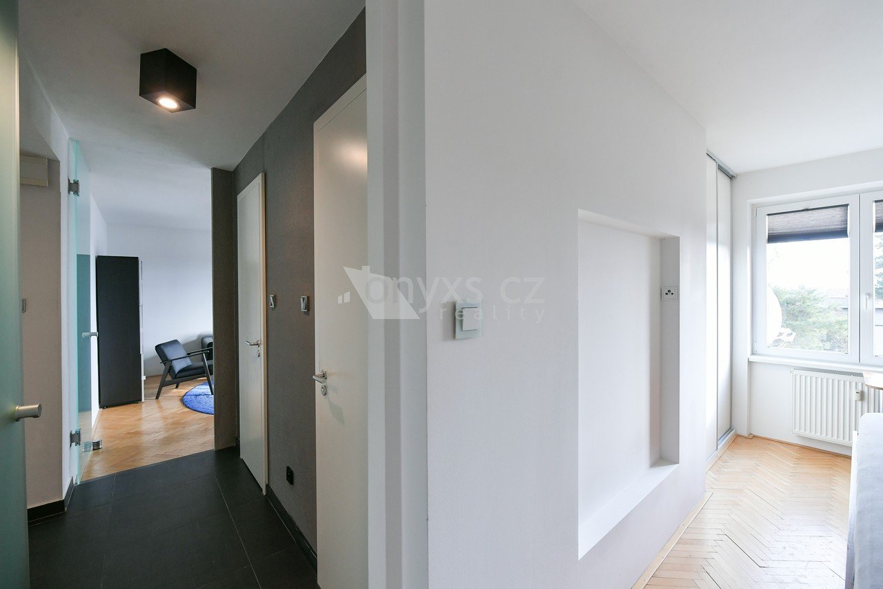Nabízíme k pronájmu zařízený byt, situovaný ve 2. podlaží bytového domu v Praze Dejvicích. Světlý byt s krásnými výhledy a s užitnou plochou 63 m2 na okraji prestižní čtvrti Hanspaulka v pražských Dejvicích nabízí výhodnou lokalitu pár minut chůze od stanice metra Dejvická, s velmi rychlým spojením do centra, s plnou občanskou vybaveností a službami v blízkém okolí. V sousedství se nachází také kampus ČVUT a mezinárodní školy.